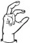 На ћирилици написано СУЗАНА КОВРЛИЈА састоји се из 14 слова [?]. Исписано ћириличном једноручном азбуком за глувонеме:
